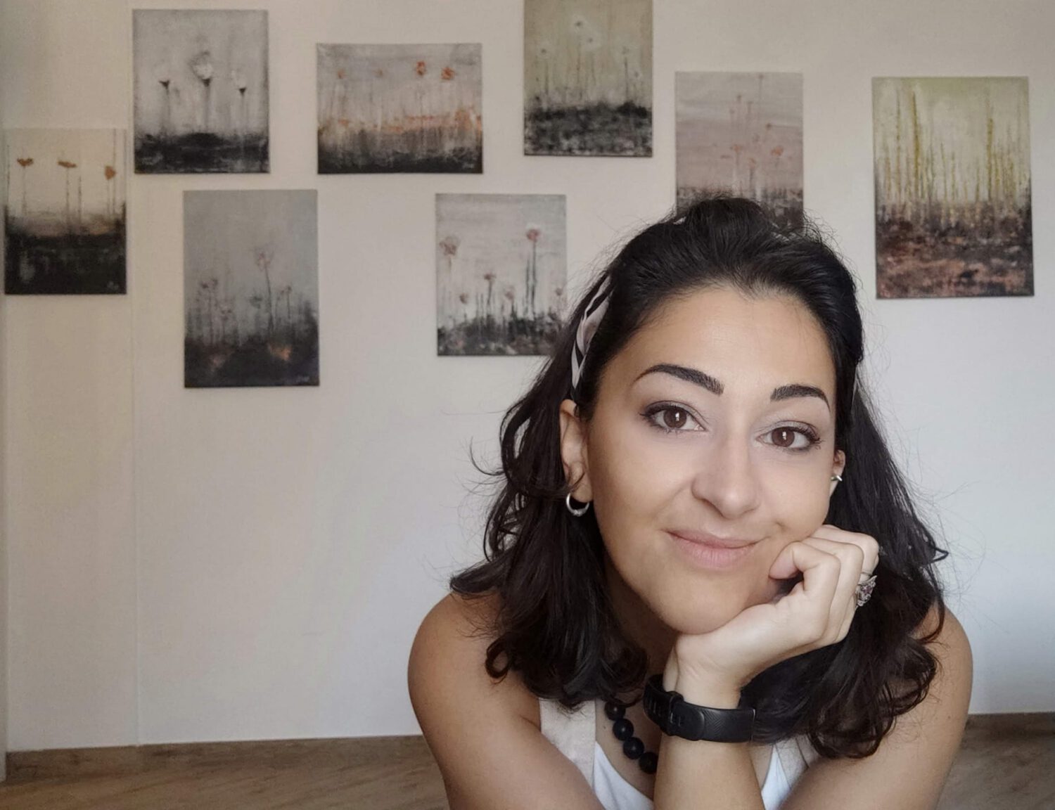 Ha iniziato a familiarizzare con la spatola, che l’aveva sempre affascinata, per poi riuscire finalmente a creare opere astratte, a dare libero sfogo al colore.
